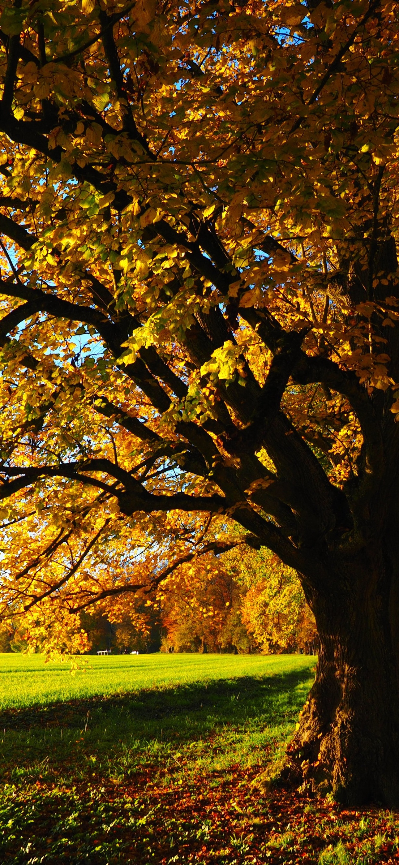 Der Herbst verwandelt die Natur in ein wahres Kunstwerk aus Farben und Formen. Wenn sich die Blätter von sattem Grün zu warmem Gelb, leuchtendem Orange und tiefem Rot verfärben, entsteht ein Anblick, der Menschen seit jeher fasziniert. Bäume im Herbst stehen für Veränderung, Ruhe und die Schönheit des natürlichen Kreislaufs. Genau diese besondere Stimmung fängt dieses Hintergrundbild perfekt ein.