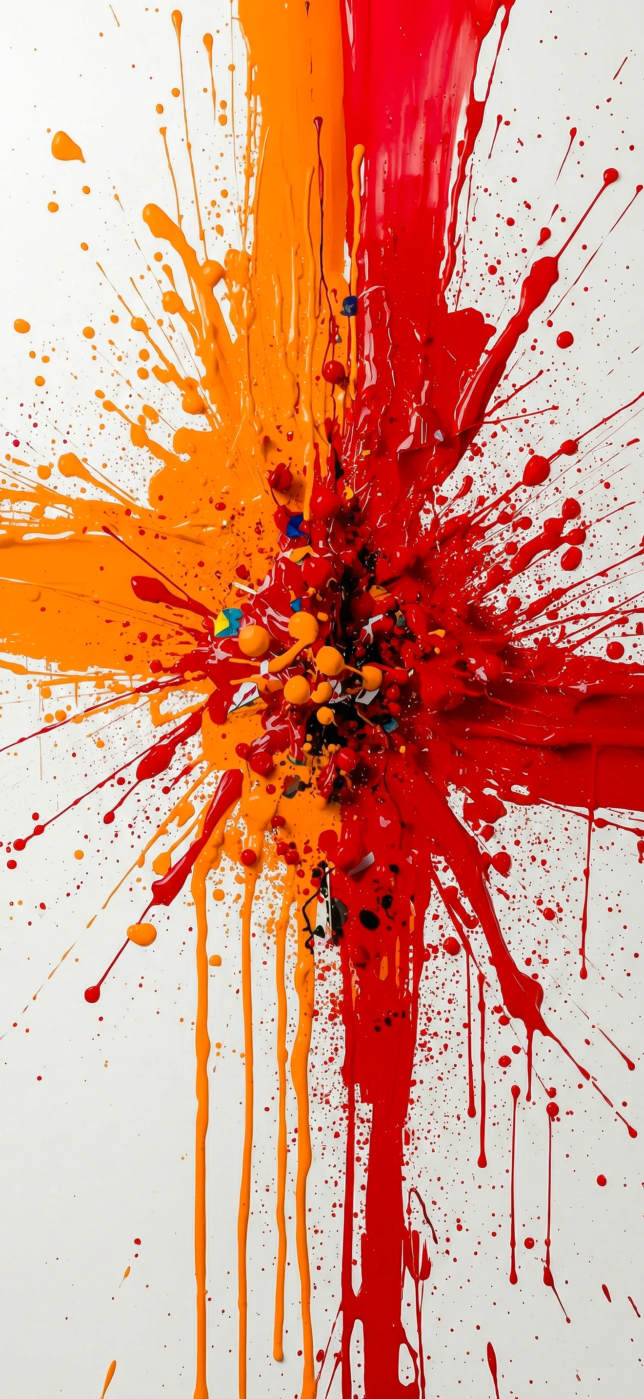 Für Besitzer des orangen iPhone 17 Modells bietet dieses Wallpaper einen ästhetischen Hochgenuss. Die explosiven Orangen- und feurigen Rottöne auf dem strahlend weißen Hintergrund greifen die Farbe des Aluminium- oder Titanrahmens direkt auf.