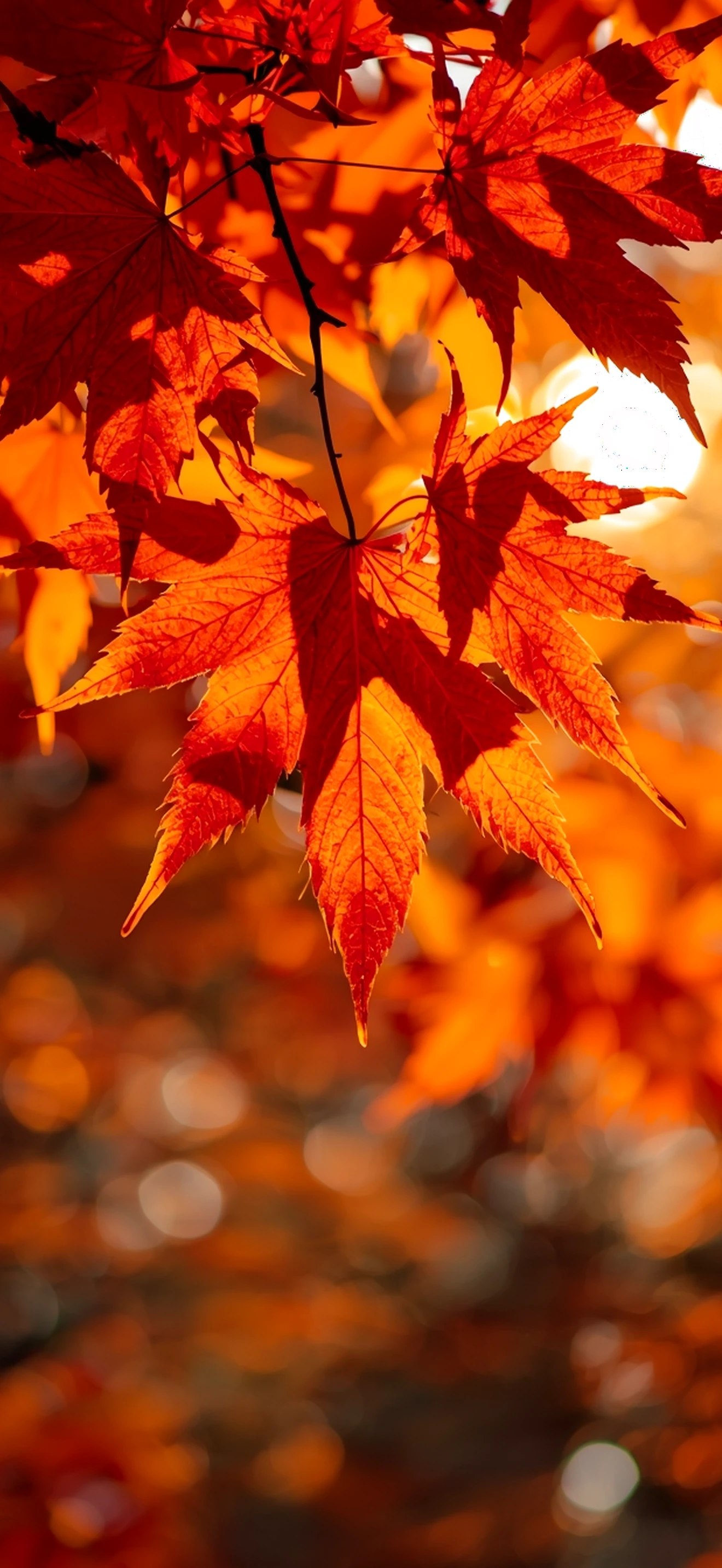 Dieses iPhone 17 Wallpaper zeigt leuchtend orange-rote Ahornblätter im warmen Herbstlicht. Die natürliche Farbpalette harmoniert perfekt mit den orangefarbenen Gehäusen des iPhone 17 und sorgt für ein einheitliches, stilvolles Gesamtbild. Dank des sanften Bokeh-Hintergrunds bleibt der Homescreen übersichtlich, während Icons und Widgets klar erkennbar bleiben.