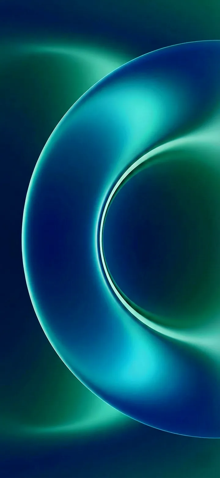 Dieses Hintergrundbild besticht durch eine faszinierende Mischung aus tiefem Blau und leuchtendem Smaragdgrün, vereint in weichen, fließenden Formen. Es ist minimalistisch, elegant und technisch perfekt auf moderne OLED-Displays abgestimmt.