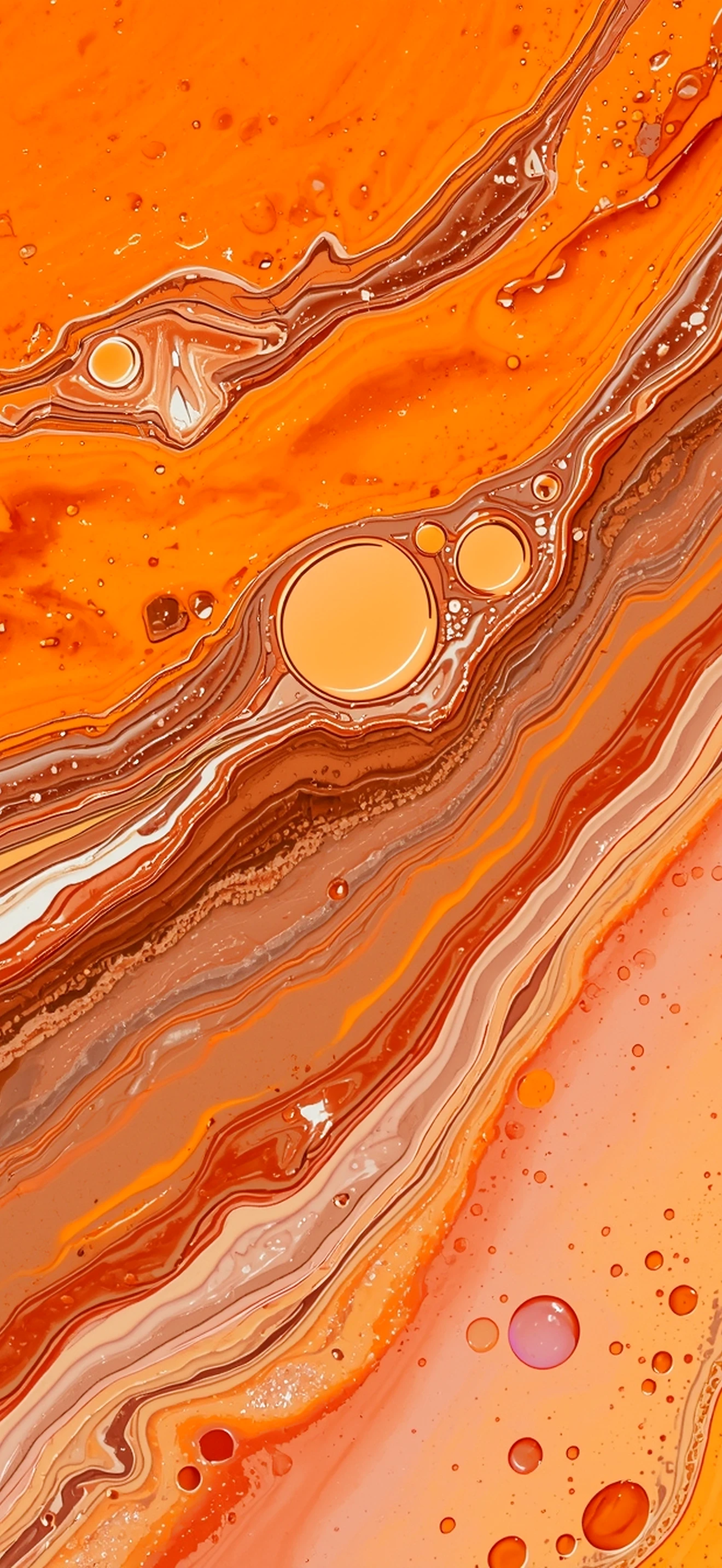 Dieses abstrakte Fluid Art iPhone 17 Wallpaper in Orange kombiniert kreative Formen, warme Farben und hohe Bildqualität zu einem außergewöhnlichen Hintergrundbild. Es passt perfekt zum orangefarbenen iPhone 17 und verleiht dem Gerät eine elegante, moderne Ausstrahlung.