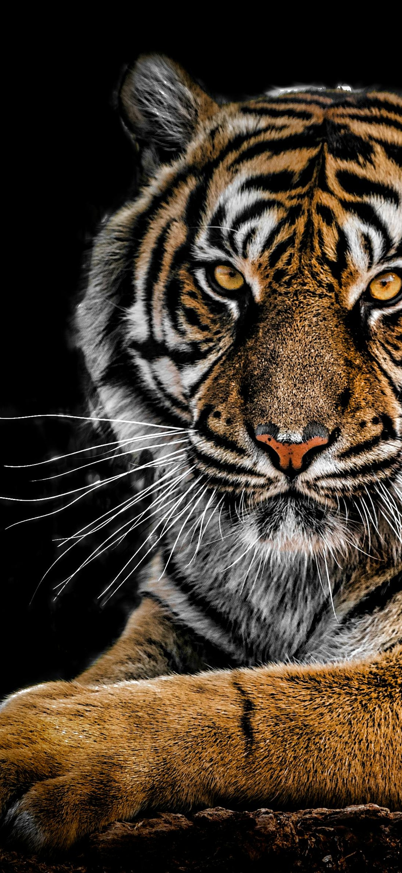 Tigers sind Symbole für Stärke, Mut und Unabhängigkeit. Durch die Nahaufnahme entsteht eine unmittelbare Verbindung zwischen dem Betrachter und dem Tier – man spürt die Präsenz und die Spannung, die von diesem Raubtier ausgeht. Die feinen Details des Fells, der Streifen und der Gesichtszüge machen dieses Tiger-Hintergrundbild zu einem visuell fesselnden Erlebnis.
