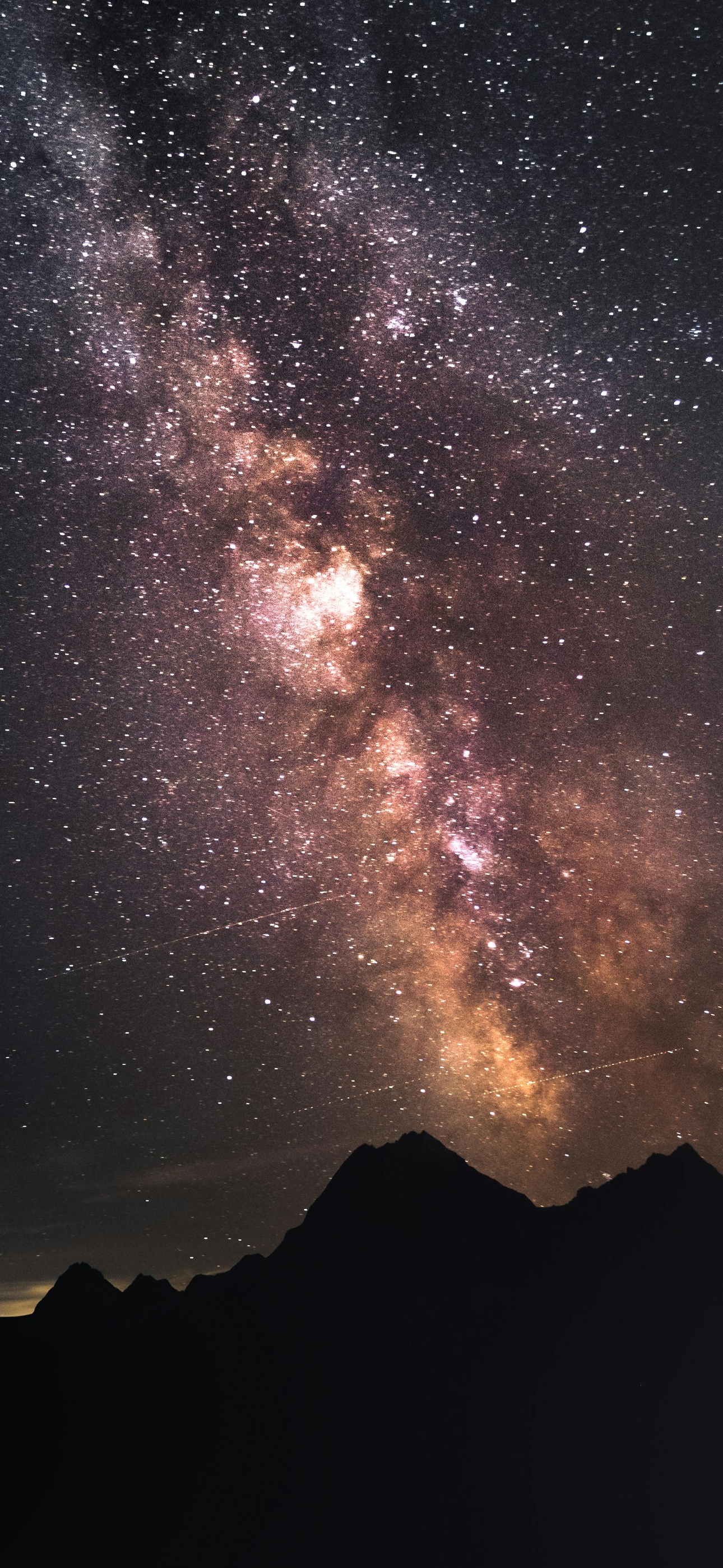 Die Silhouette des Berges vor dem sternenklaren Nachthimmel vermittelt Ruhe und eine mystische Atmosphäre. Dieses mobile Hintergrundbild ist speziell für iPhone, Samsung und andere Smartphones optimiert. Funkelnde Sterne und die markante Bergform schaffen ein eindrucksvolles Bild für dein Display. Lade das Wallpaper herunter und genieße die Schönheit der Nacht auf deinem Handy.